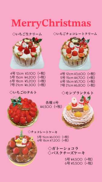 クリスマスケーキご予約承ります🎅2025年11月10日2025年11月10日お知らせ ご覧いただきありがとうございます。 2025年クリスマスケーキ11月11日(火曜日)よりご予約承ります! ご予約お待ちしております𓂃 𓈒𓏸